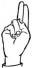 На ћирилици написано КАЋА ДЕНИЋ састоји се из 9 слова [?]. Исписано ћириличном једноручном азбуком за глувонеме: